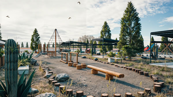 Jugar en el area infantil de 1680 x 700 mts2 aprox. y un Rally integrado.